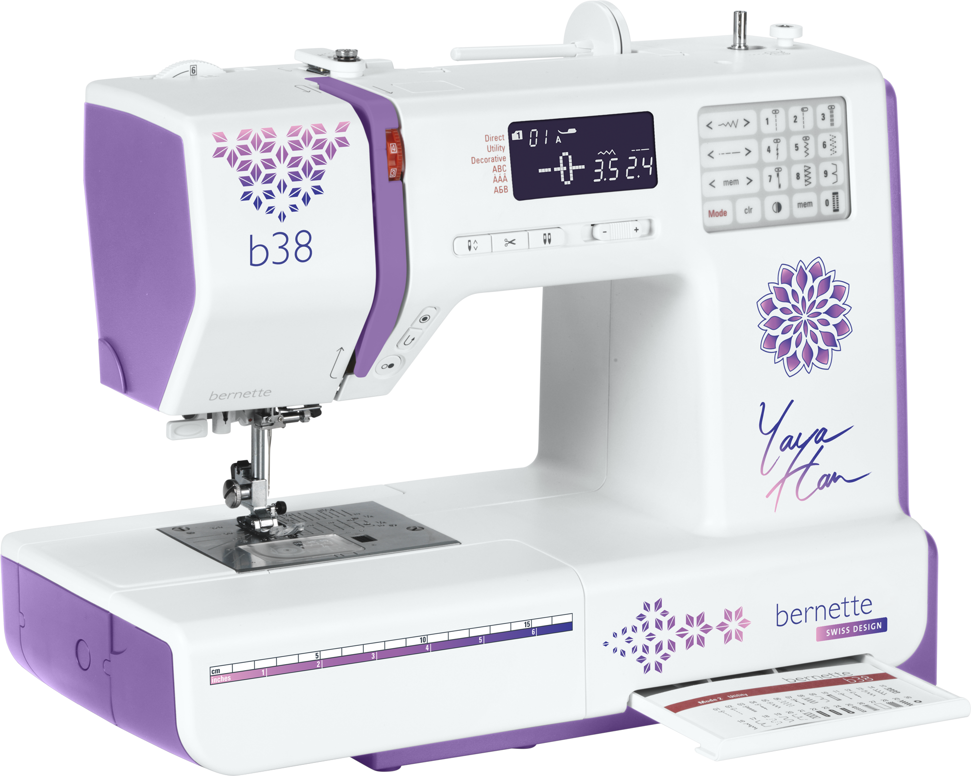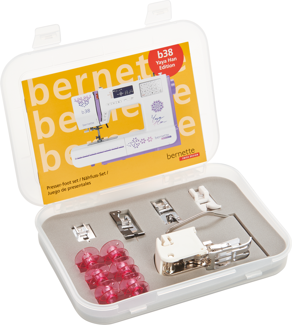Basierend auf Topmodell der vielseitigen b30-Serie bietet die b38 Yaya Han zahlreiche Komfortfunktionen wie verstellbaren Nähfussdruck, automatischen Fadenabschneider und eine Stichbreite von 7 mm – ideal, um dich in jeder Phase deines Projekts zu unterstützen.